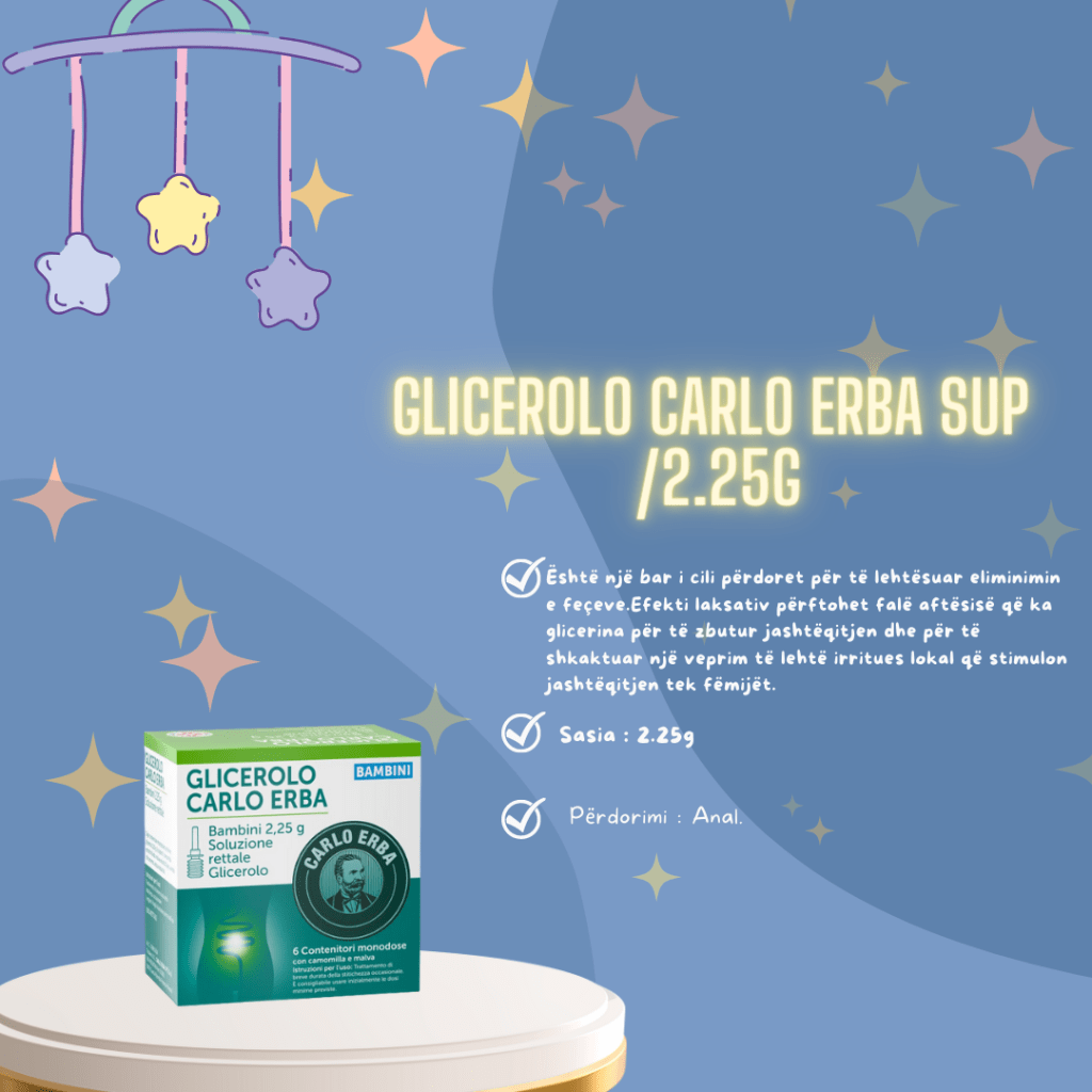 Është një bar i cili përdoret për të lehtësuar eliminimin e feçeve.Efekti laksativ përftohet falë aftësisë që ka glicerina për të zbutur jashtëqitjen dhe për të shkaktuar një veprim të lehtë irritues lokal që stimulon jashtëqitjen tek fëmijët.