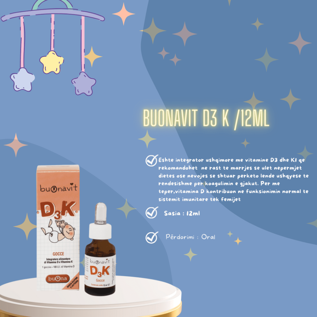 shte integrator ushqimore me vitamine D3 dhe K1 qe rekomandohet ne rast te marrjes se ulet nepermjet dietes ose nevojes se shtuar perketo lende ushqyese te rendesishme per koagulimin e gjakut. Per me teper,vitamina D kontribuon ne funksionimin normal te sistemit imunitare tek femijet.