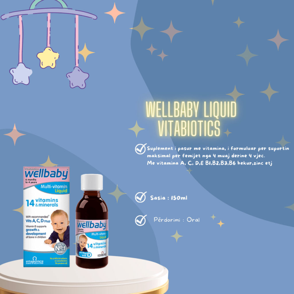 Suplement i pasur me vitamina, i formuluar per suportin maksimal per femijet nga 4 muaj derine 4 vjec. Me vitamina A, C, D,E B1,B2,B3,B6 hekur,zinc.