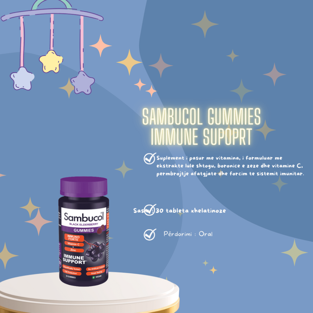 Suplement i pasur me vitamina, i formuluar me ekstrakte lule shtogu, boronice e zeze dhe vitamine C, permbrojtje afatgjate dhe forcim te sistemit imunitar.
